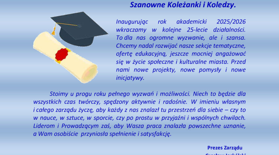Niniejszym informuję iż jest możliwość utworzenia grupy języka angielskiego dla początkujących i w stopniu podstawowym . Zajęcia odbywałyby się w Szkole Podstawowej na Osiedlu Zachód w czwartki w godz. 16:45 do 17:45 sala 103. Osoby zainteresowane proszę zgłaszać w Sekretariacie UTW we wtorki i czwartki w godz. 12:00 do 14:00 /tel. 91 563 71 05lub po 22 października tel. 503 872 660 Grażyna Barszczewska Augusiak