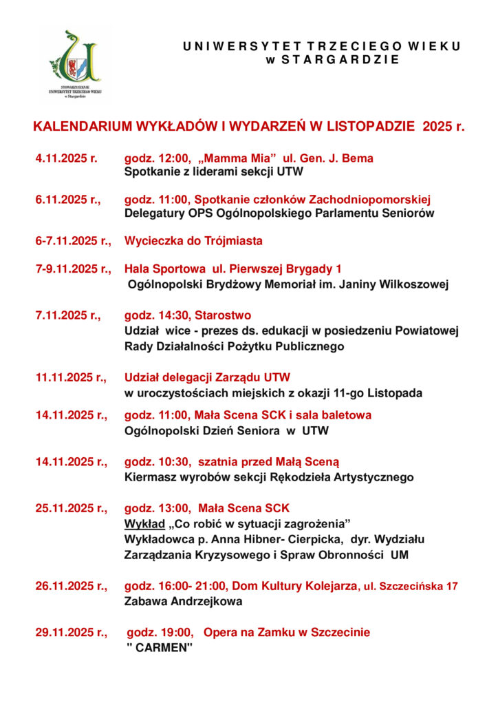 Home > Aktualności > Komunikaty > Kalendarium Wykładów i Wydarzeń w listopadzie 2025 r.