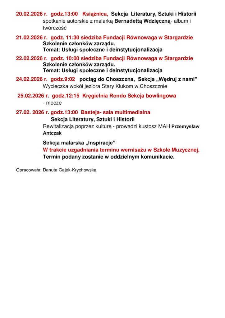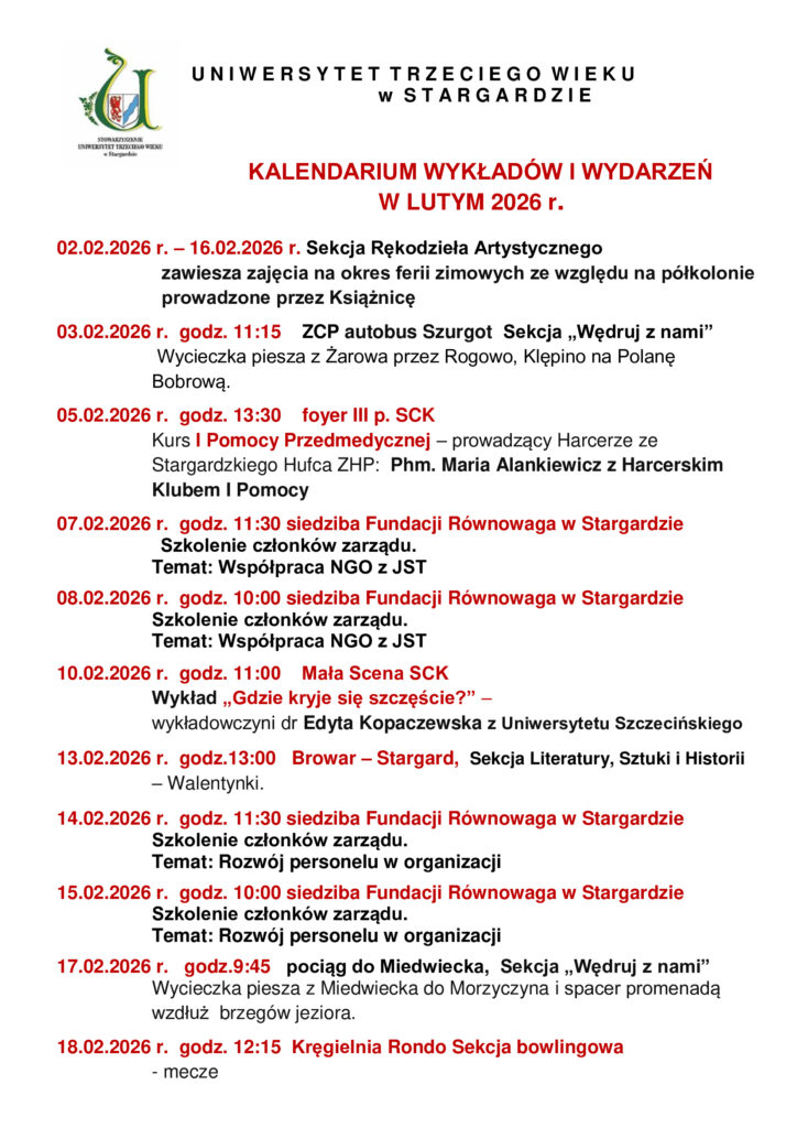 Home > Aktualności > Komunikaty > KALENDARIUM WYKŁADÓW I WYDARZEŃ W LUTYM 2026 r.