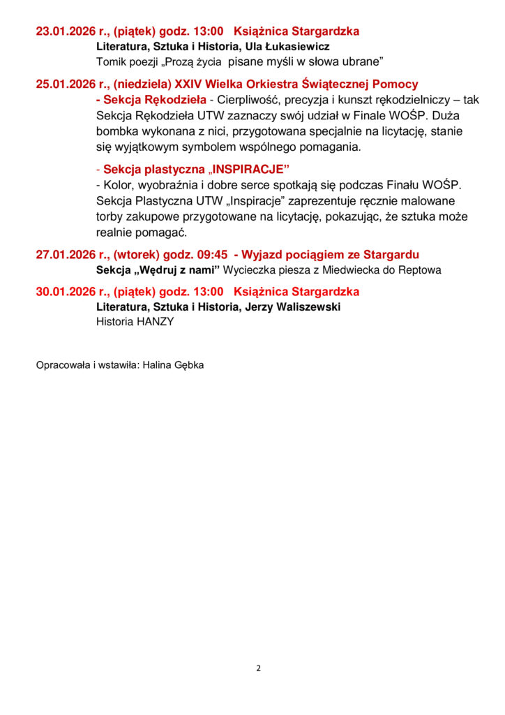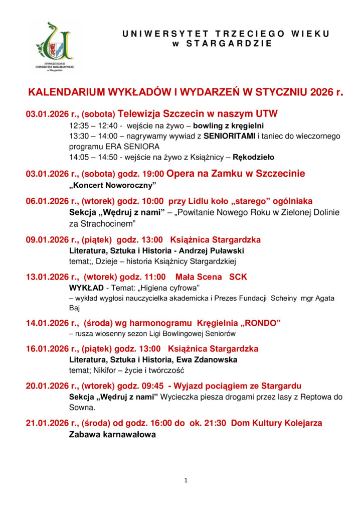 Home > Aktualności > Komunikaty > KALENDARIUM WYKŁADÓW I WYDARZEŃ W STYCZNIU 2026 r.