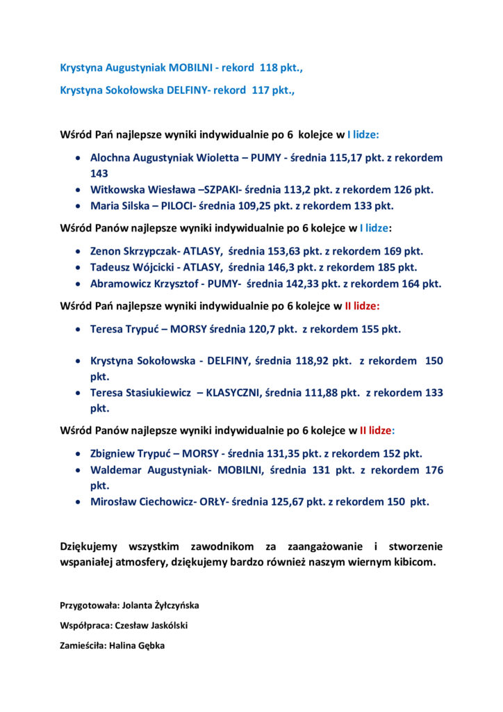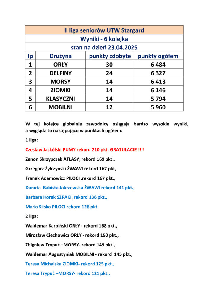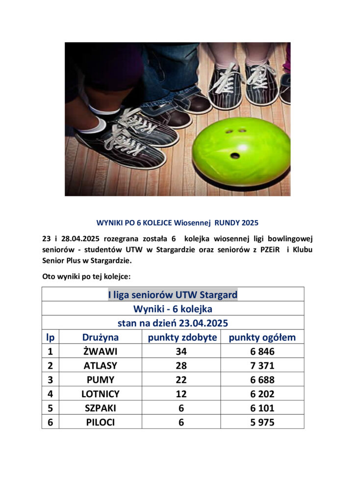 Home > Aktualności > Kręgle > WYNIKI PO 6 KOLEJCE Wiosennej  RUNDY 2025