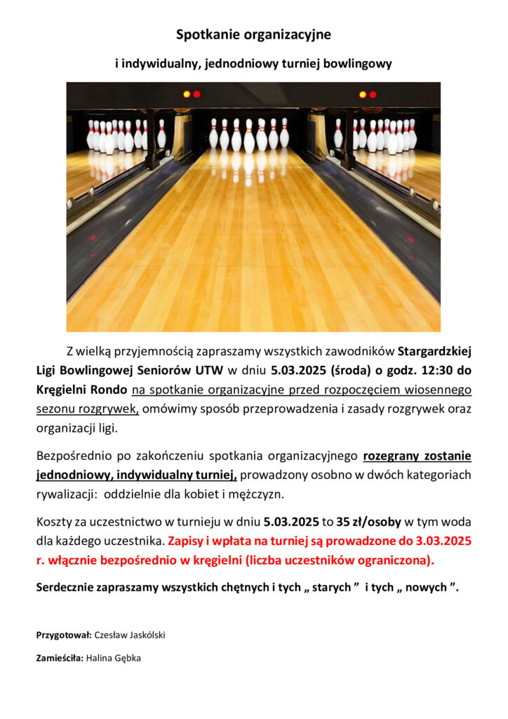 Home > Aktualności > Kręgle > Spotkanie organizacyjne i indywidualny, jednodniowy turniej bowlingowy