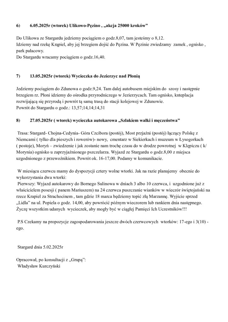 Plan wycieczek Grupy turystyczno – krajoznawczej „Wędruj z nami”
