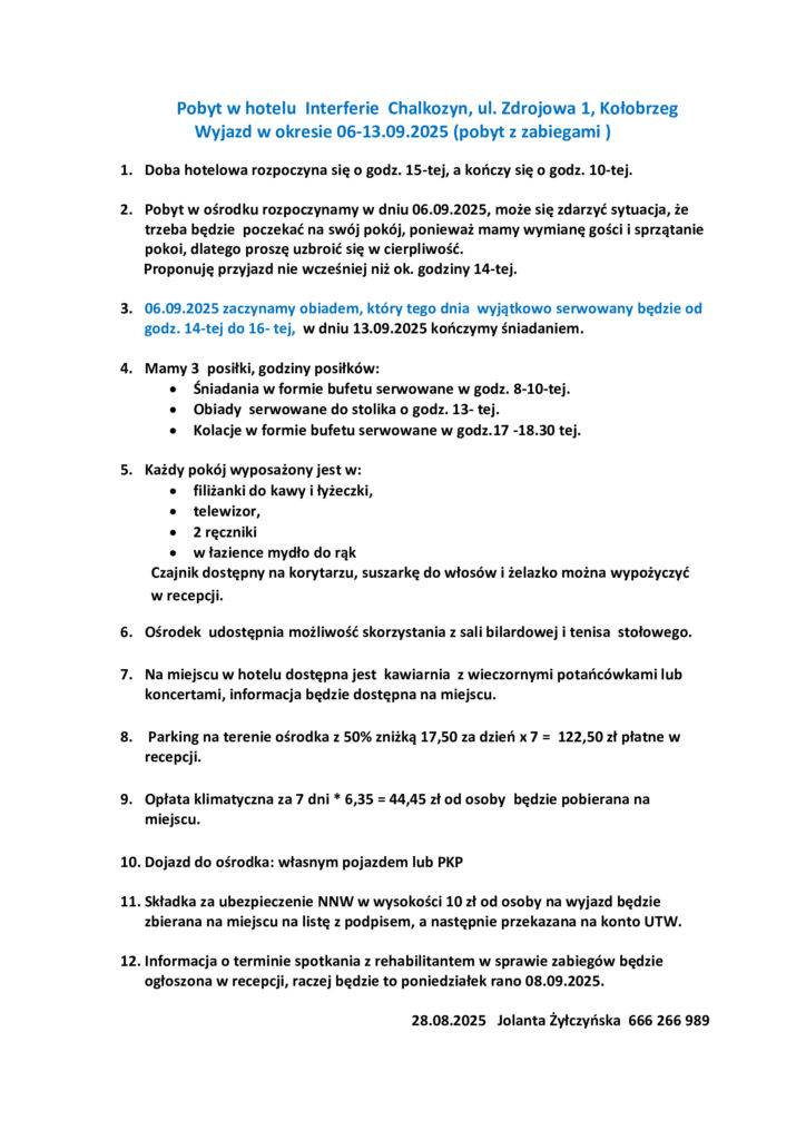 Home > Aktualności > Wyjazd do Chalkozynu w Kołobrzegu, pobyt 06-13.09.2025, informacje dla uczestników