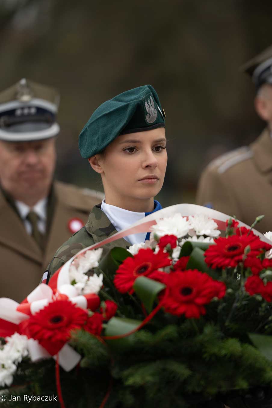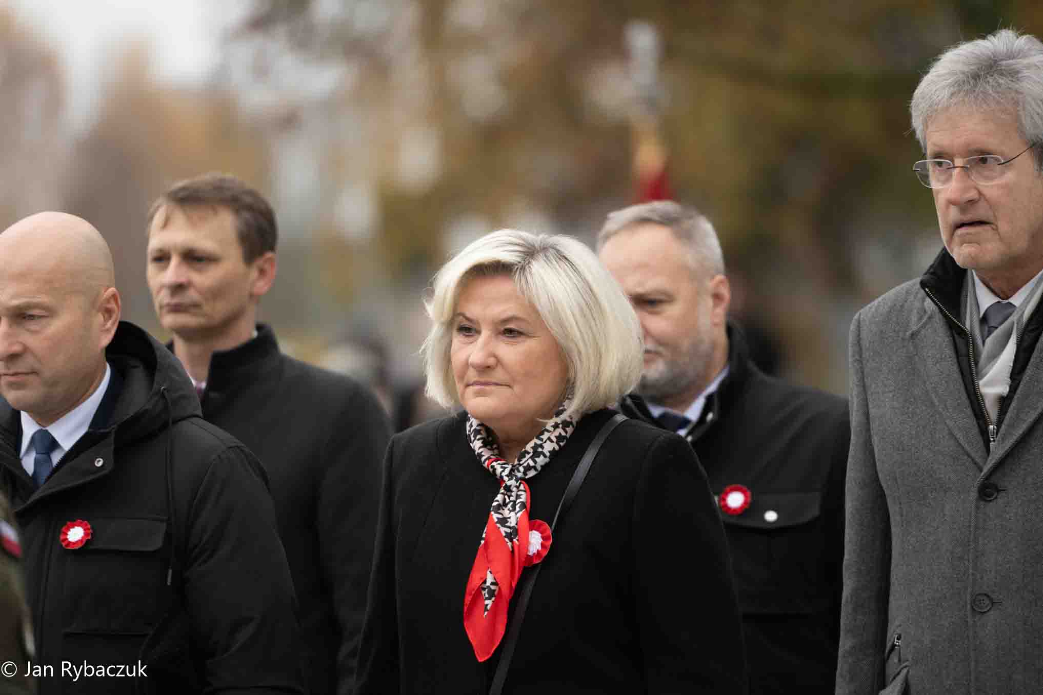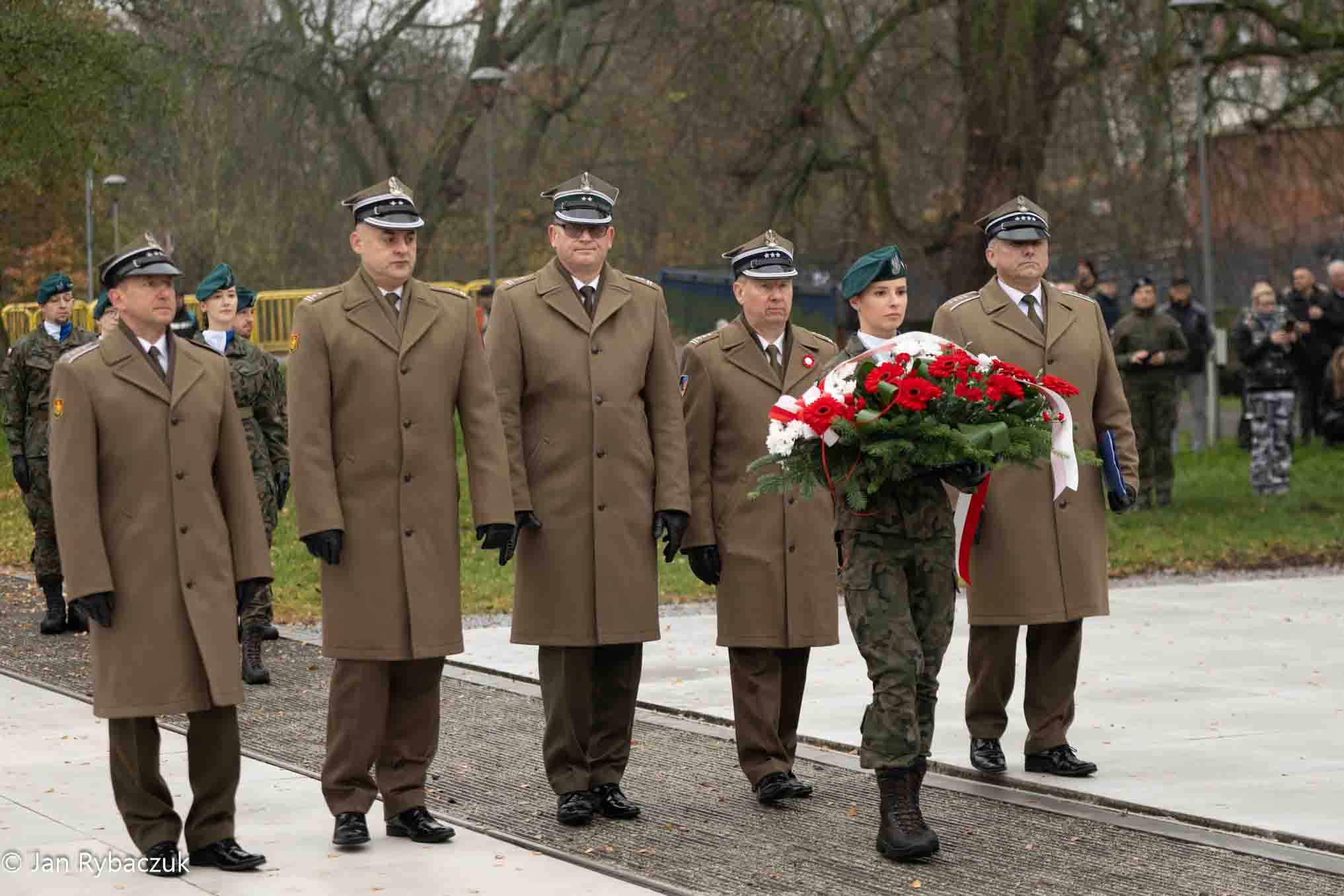 Uroczystość, której gospodarzem był 2. Batalion Saperów, rozpoczęła się apelem pamięci poległych w walkach o niepodległość Ojczyzny. Po czym nastąpiło składanie wiązanek i w pierwszej kolejności zaszczytu dostąpiło Wojsko Polskie. Następnie wiązanki składały delegacje Urzędu Miasta I Starostwa oraz pozostałe delegacje w tym nasza z UTW w składzie: Czesław Jaskólski, Wiesława Sokołowska i Danuta Gajek-Krychowska. Szczególne wrażenie zrobiła Grupa Motorowa, gdy podczas składania przez ich delegatów wiązanki inni motocykliści użyli głośnych dźwięków silników.