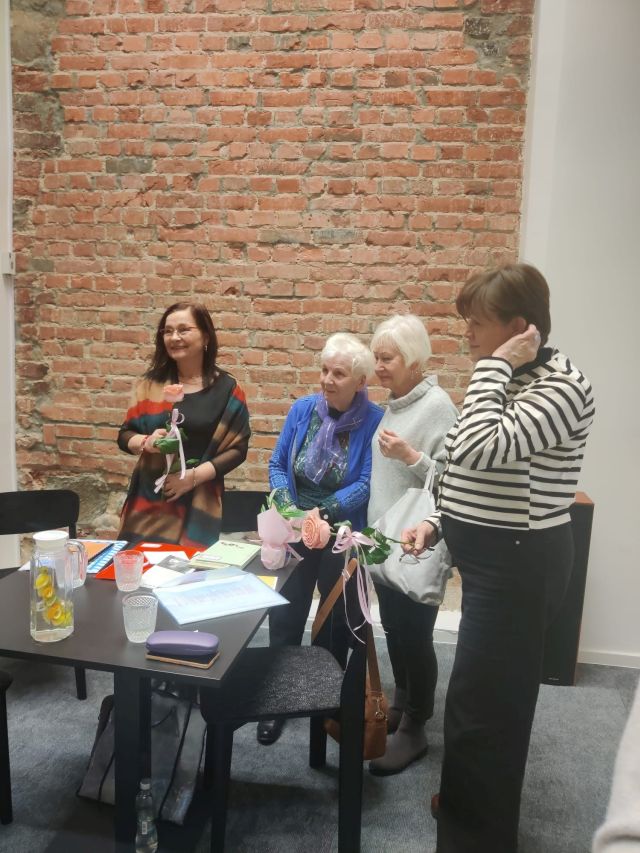 Koleżanki Barbara Majewska, Urszula Łukasiewicz i Bożena Kaczyńska z przyjemnością wspomogły P. Mariannę w czytaniu jej wierszy.