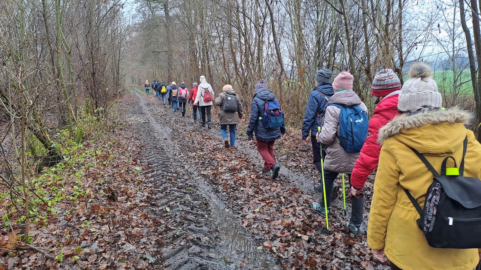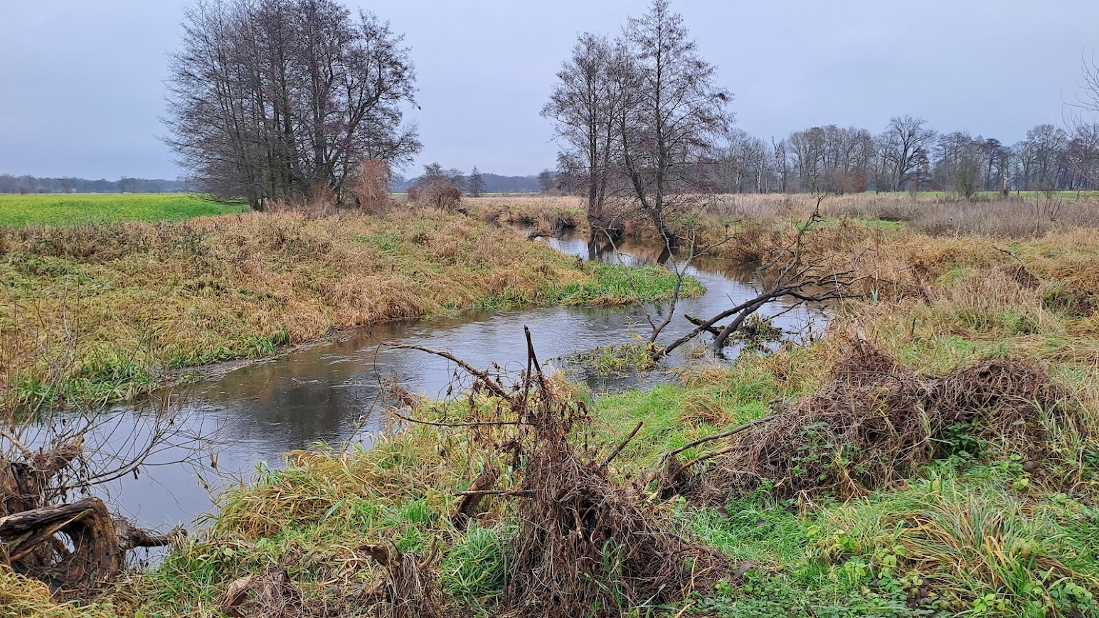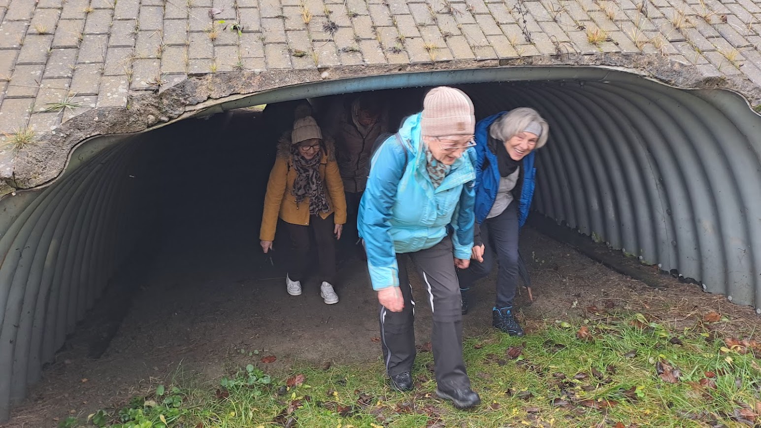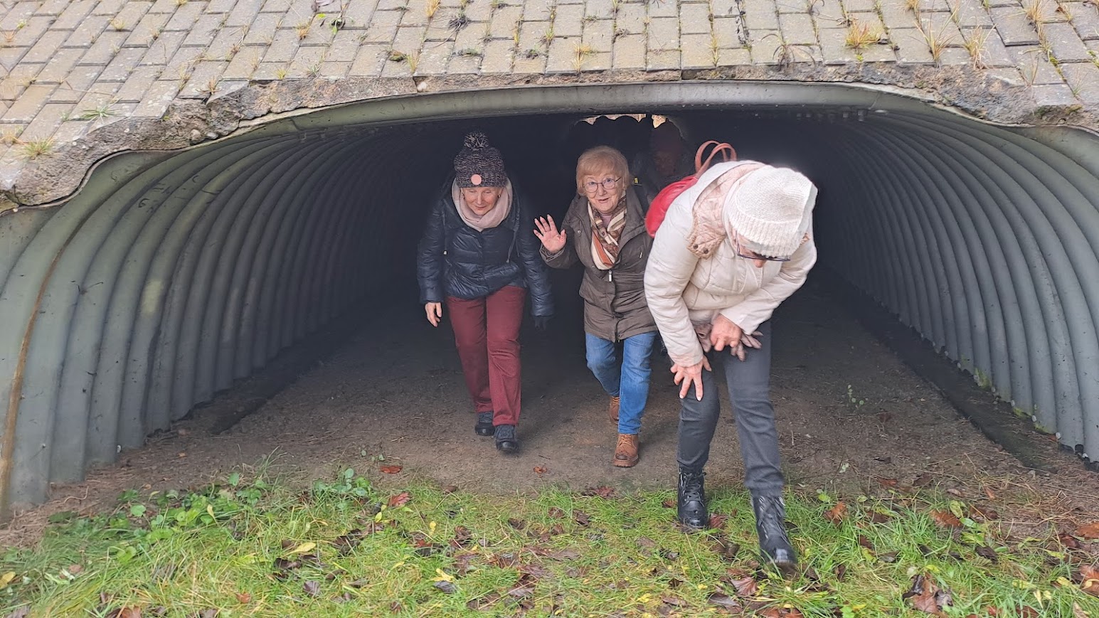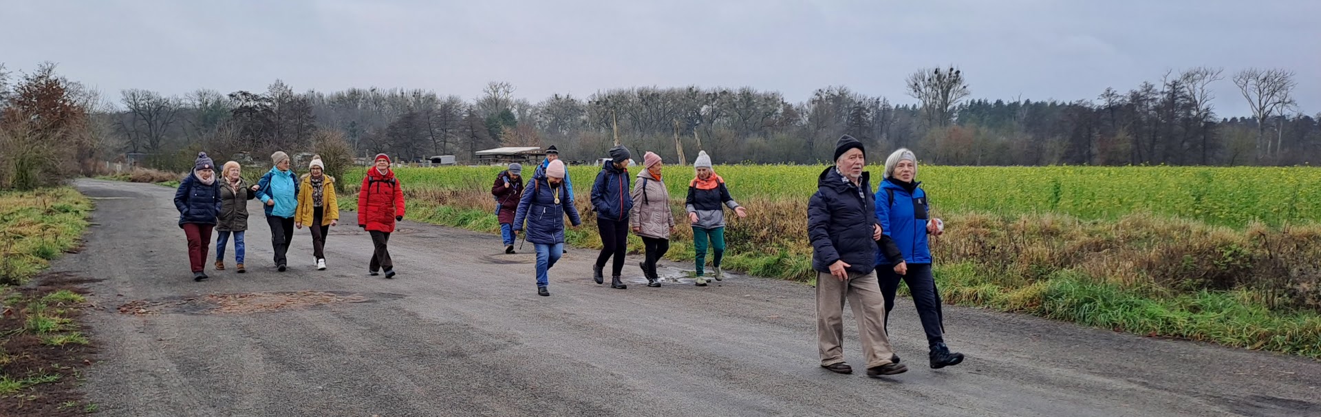 We wtorek 09.12.2025 r, pomimo fatalnych prognoz pogodowych, nasza niezawodna, wędrująca gromada, w liczbie 23 uczestników, wybrała się na wycieczkę po witkowskich łąkach. Ze Stargardu pojechaliśmy autobusem nr 30 do Witkowa i stamtąd wyruszyliśmy pieszo, drogą prowadzącą przez witkowskie łąki. Jesienią jest tam bardzo cicho, brak śpiewających ptaków . Niemniej udało się nam zauważyć jeden klucz lecących gęsi i dwa niewielkie stada łabędzi. Pogoda mglista z temperaturą ponad 10 stopni, co jest pewną anomalią w grudniu, więc ptaki też zmieniają swoje miejsca pobytu. Przeszliśmy przez most na rzece Inie i poszliśmy dalej drogą, która po pewnym czasie skręcała w kierunku Stargardu. Na rozstaju dróg mieliśmy króciutki postój aby posilić się energetyczną herbatką serwowaną przez naszą Irenkę. Początkowo szliśmy prawie suchą drogą wyłożoną płytami jumbo, aż do przejścia przez tunel dla zwierząt pod S10. Po obu stronach rozciągały się rozległe witkowskie łąki, nawet jeszcze zielone, o tej porze roku. Za tunelem , weszliśmy w teren trochę zadrzewiony, gdzie zaczęło się dosyć mocne błotko na naszej drodze. Szliśmy gęsiego uważając, aby nie wpaść w jakąś błotnistą kałużę, lub się nie poślizgnąć. Ale daliśmy radę i jakoś wszyscy sprawnie doszliśmy do miejsca bardziej suchego, gdzie zatrzymaliśmy się na dłuższy odpoczynek. Tym razem ogniska nie rozpalaliśmy, bo wszystko było bardzo mokre po nocnych opadach deszczu. Dalej, to już była dosyć wygodna droga prowadząca obok przepływającej rzeki Krąpiel, aż do czerwonego mostku. Później przeszliśmy koło pomnikowego dębu i dalej przez przejazd kolejowy i doszliśmy do ulicy Nowowiejskiej.
