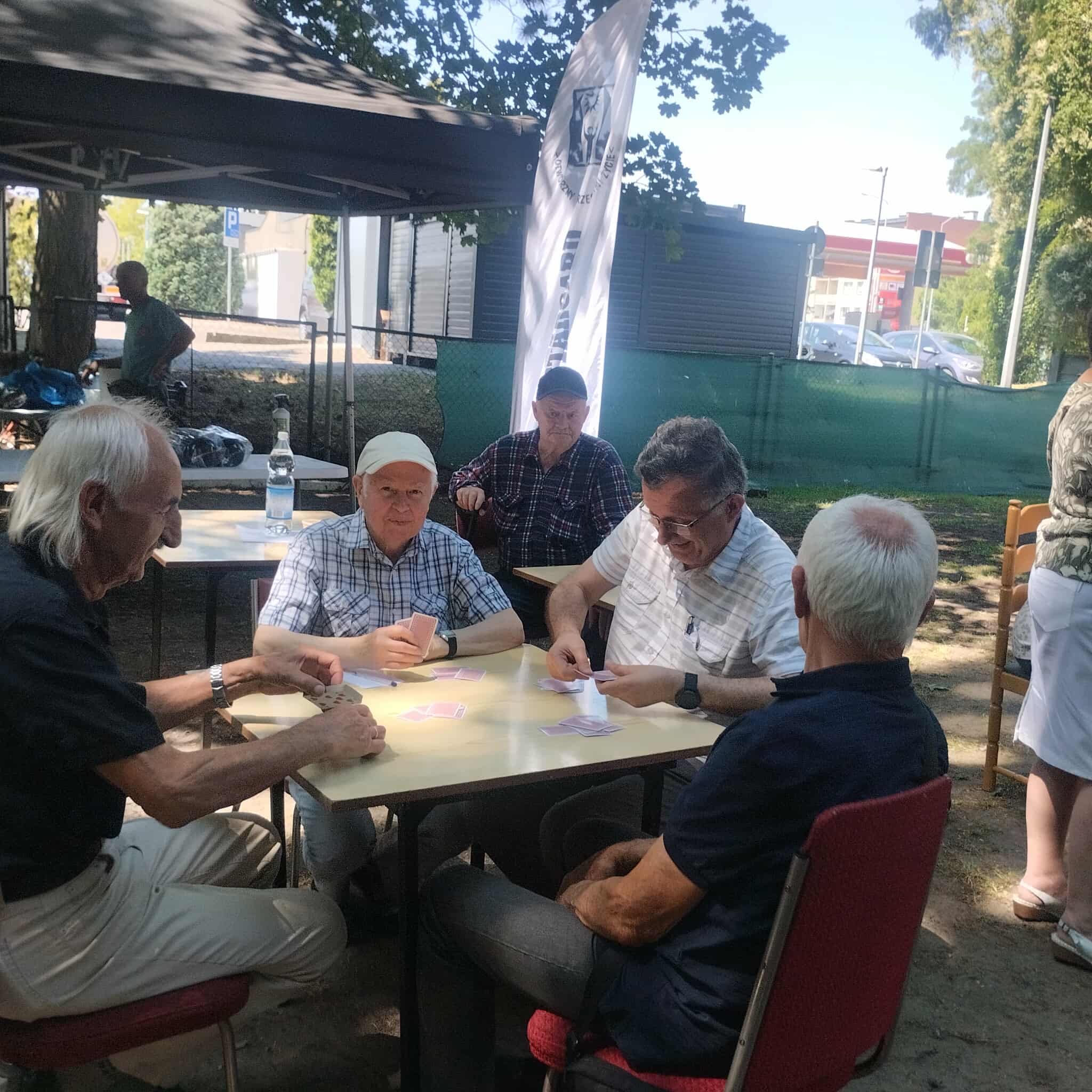 Nie zabrakło też emocji sportowych – nasi brydżyści rozegrali mecz, który przyciągnął uwagę wielu uczestników. Z kolei scena rozbrzmiewała dźwiękami muzyki – występy zespołów Chabry i Seniority wniosły energię, radość i artystyczny blask. „Chabry” zagrały dźwięcznie i żywiołowo, a „Seniority” – jak zawsze – były naszymi scenicznymi perełkami.