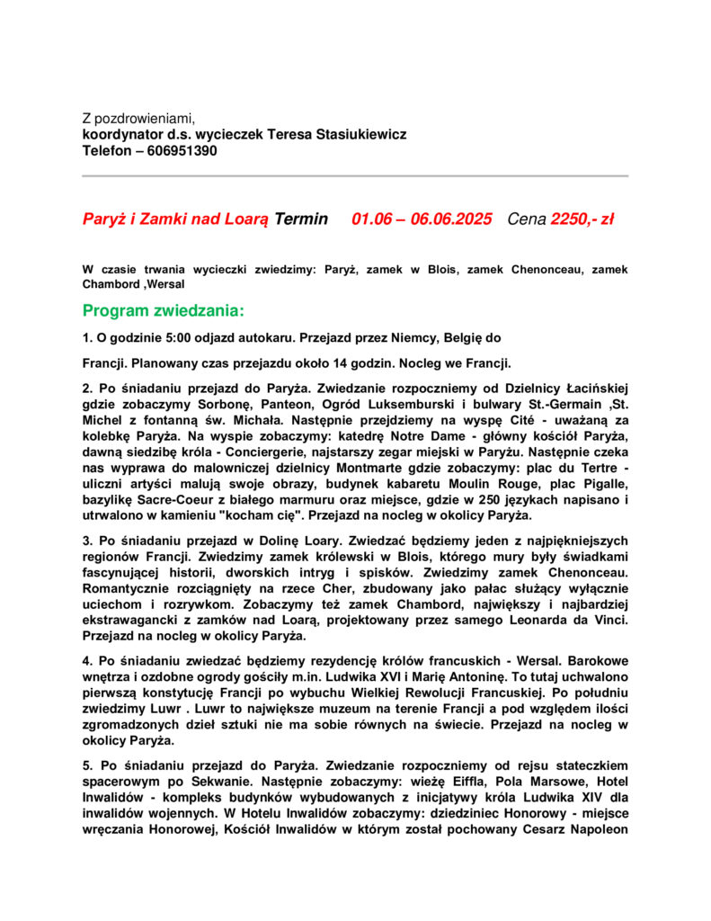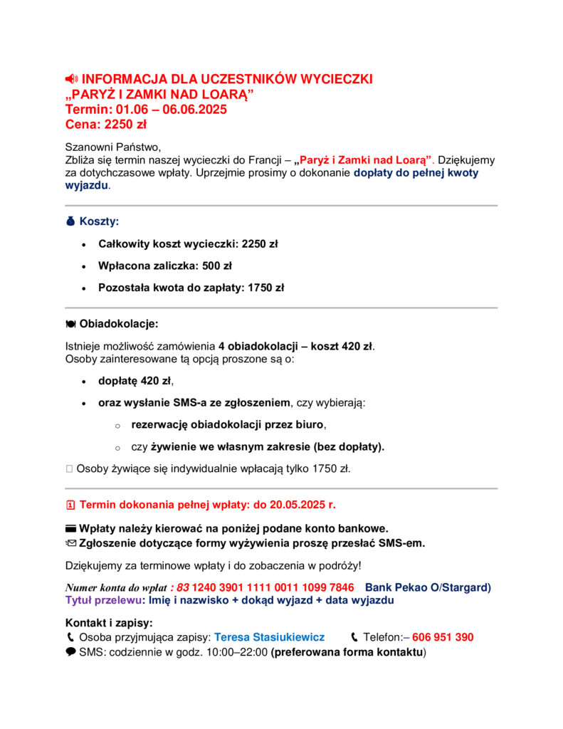 Home > Wycieczki > Wycieczki 2025 > INFORMACJA DLA UCZESTNIKÓW WYCIECZKI „PARYŻ I ZAMKI NAD LOARĄ” Termin: 01.06 – 06.06.2025
